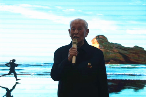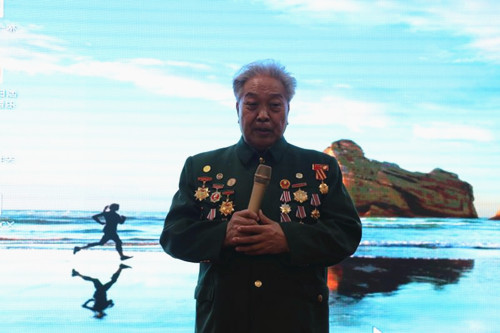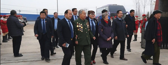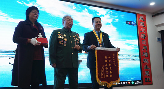 援越抗美老战士、警卫标兵孔祥秀给河南中心院名誉院长吕全海颁发锦旗
